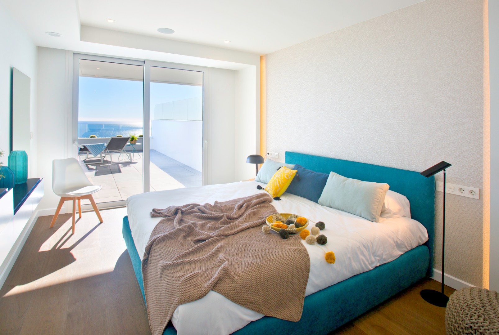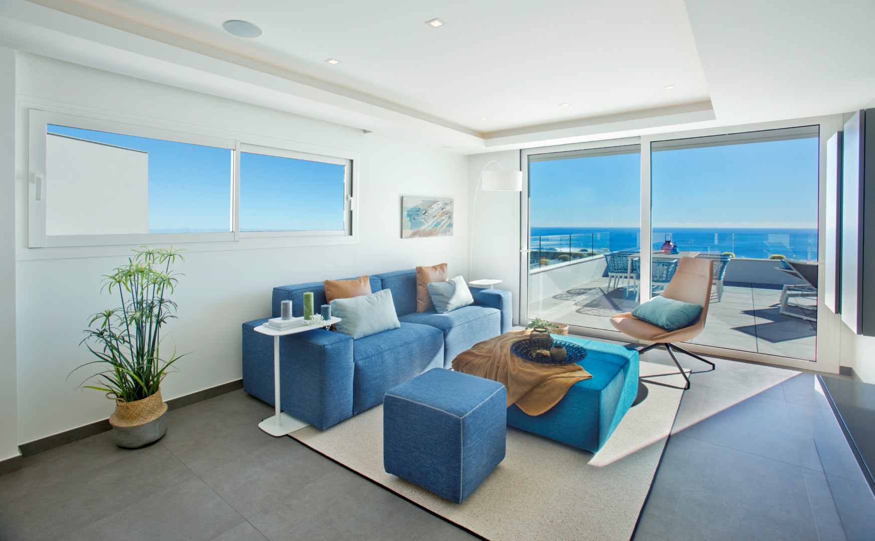 Overview: A development that, due to its location, enjoys the spectacular sea view of which Cumbre del Sol is known internationally. A truly perfect place for those who want to enjoy the Mediterranean climate and beautiful sunrises, in a private residential complex by the sea. The apartments are distinguished by their modern and elegant design and their large surfaces: the smallest has a living area of ??more than 100m² and a terrace of 47m², excluding communal areas. With two models with 3 bedrooms and 2 bathrooms and a model with 2 bedrooms and 2 bathrooms, so you can choose which fits best with your lifestyle. These properties are perfect for living all year round or enjoying during the holidays, thanks to a careful layout and their luxurious fixtures and fittings, with underfloor heating, air conditioning, home automation, wall cladding with wood panels or porcelain, wooden floors on terraces, custom-designed Krion bathroom furniture, ..., using high-end brands such as Inalco, Grohe, Krion, Mosso, Hakwood, Vescom, Duravit, among others. This development would not be complete without the spacious communal areas, so that during the summer months you can enjoy the rectangular outdoor infinity pool with a large terrace and the covered wellness area with heated swimming pool, jacuzzi, sauna and Turkish bath in the rest of the year; everything you need to relax by the sea. PRICES FROM € 430,000.